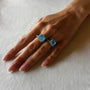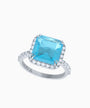 A refined silver ring centered with aquamarine quartz in a shade reminiscent of the crystal-clear ice of Antarctica. The stone captivates with its luminous transparency and vibrant play of light, evoking a feeling of freshness and serenity.