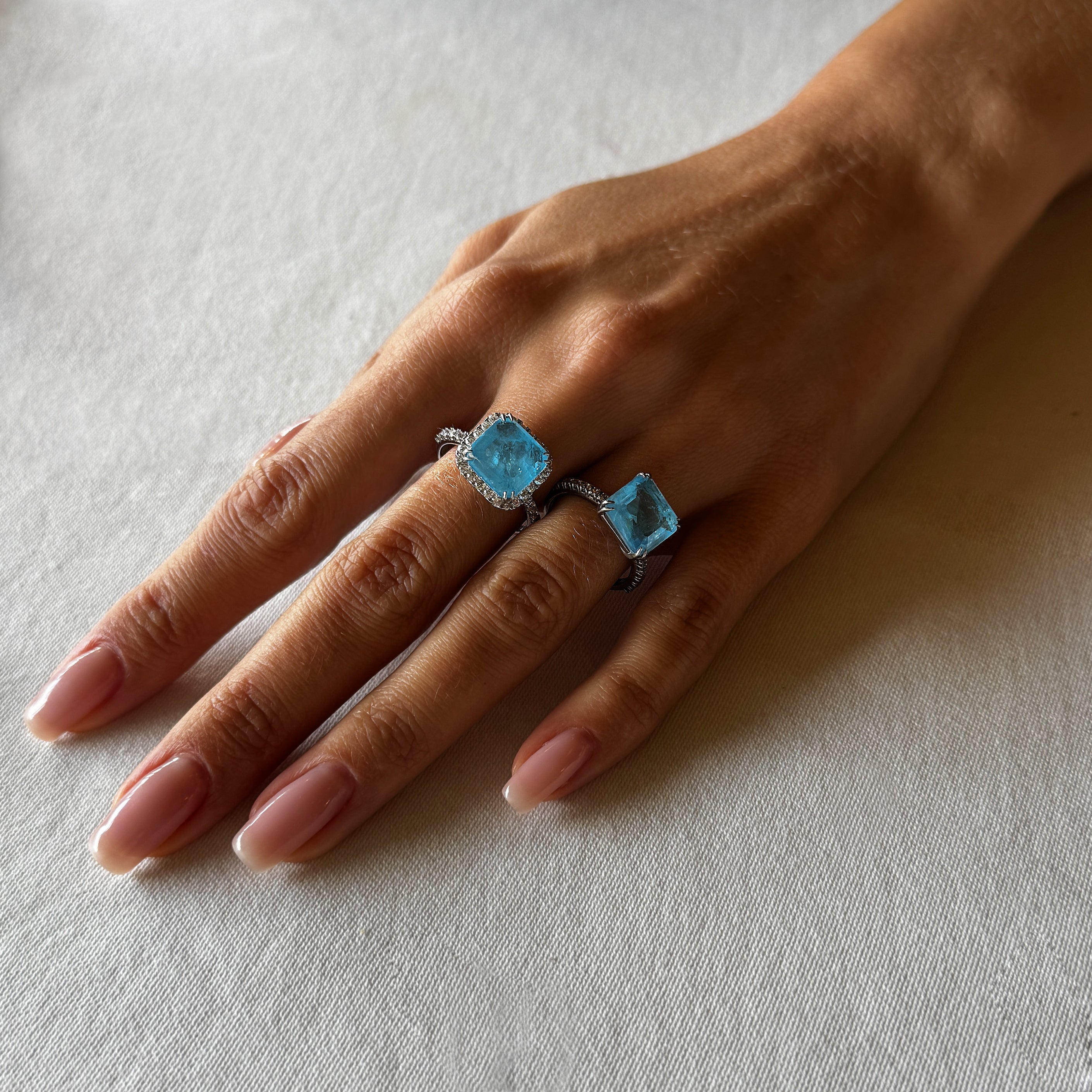 Its deep, cool tone makes this ring a perfect choice for those who appreciate understated elegance and contemporary style. Ideal for both everyday wear and evening occasions, it adds a touch of purity and natural beauty to any look.