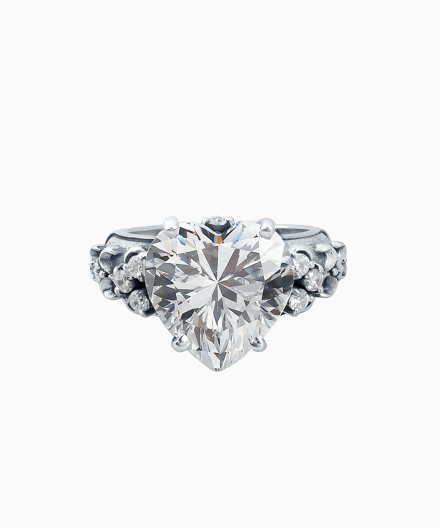Silver Heart-Cut Cubic Zirconia Ring