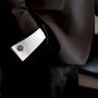 Each pair of silver cufflinks in the collection carries the Latin name of its zodiac sign, with gemstones carefully set to recreate the shimmering pattern of its constellation. This layering of cosmic symbolism with precious materials creates a unique convergence of past, present, and future on the face of every cufflink.