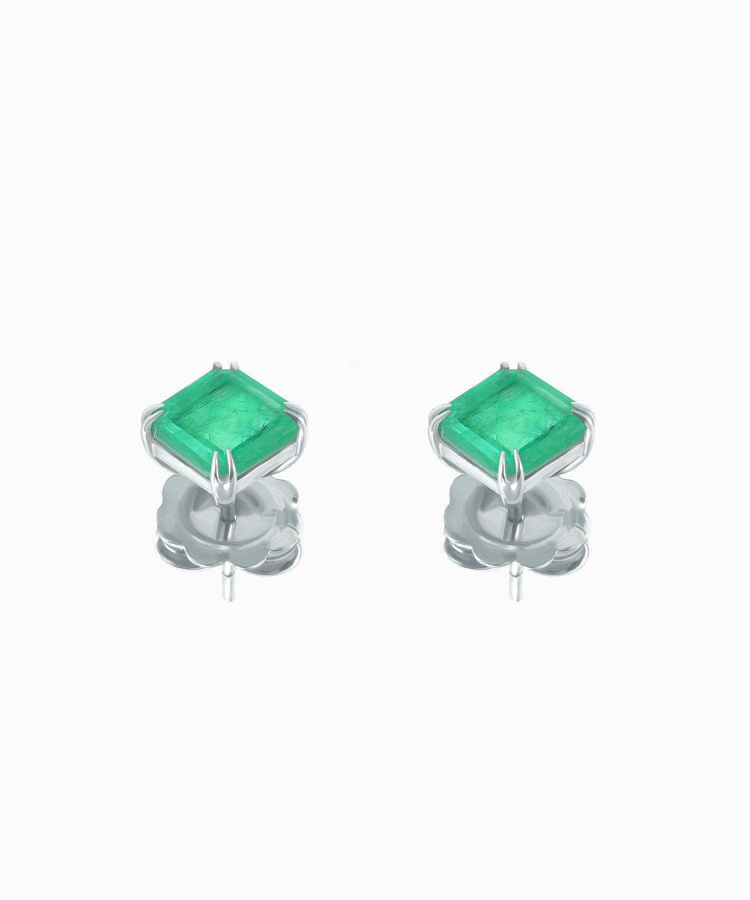 These silver stud earrings feature emerald quartz that beautifully imitates the delicate hue of a light emerald — an elegant piece that blends tenderness with refined luxury. The square-cut stones captivate with their luminous play of light, enhancing the purity and transparency of their soft green tone.