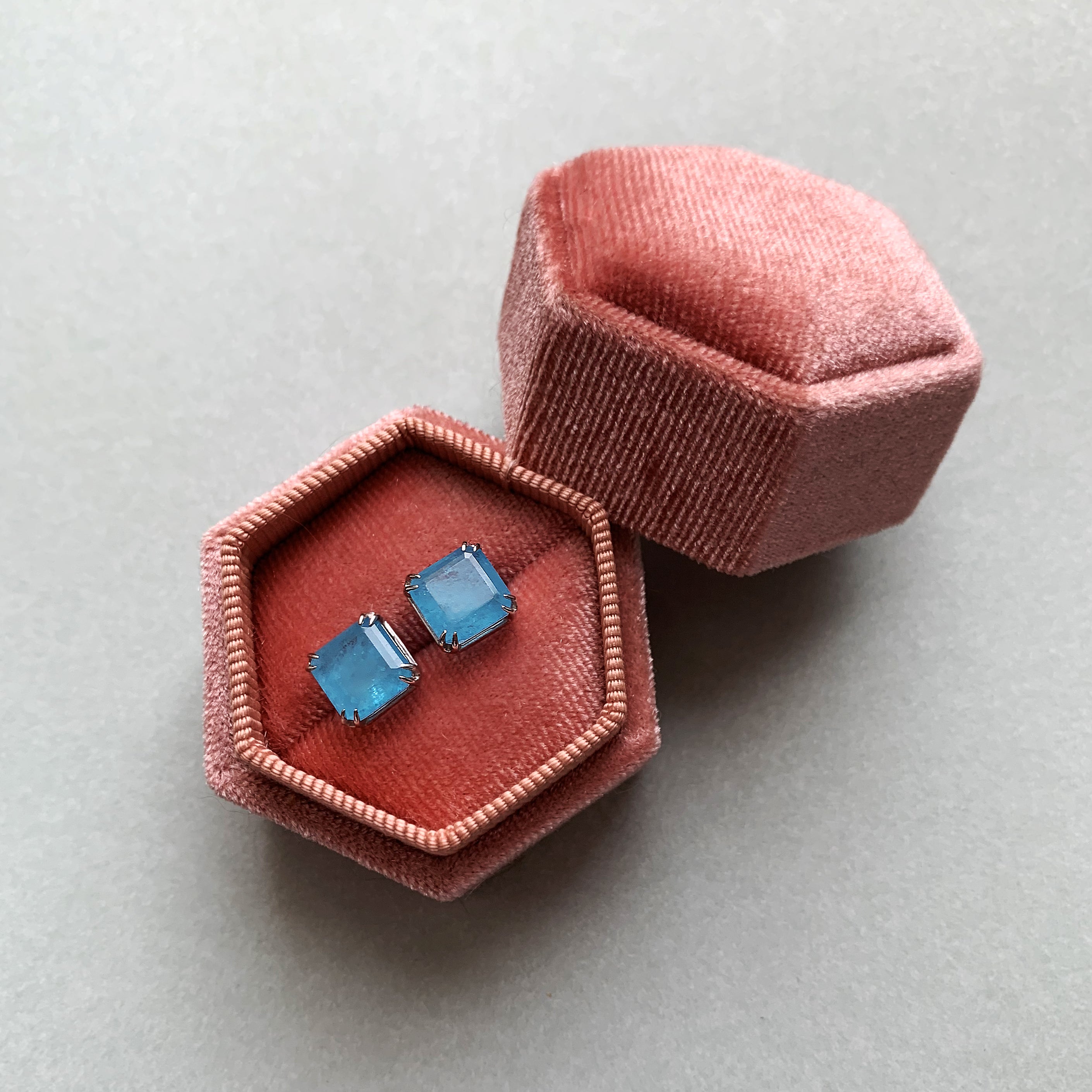 Elegant silver stud earrings featuring aquamarine quartz in a shade reminiscent of the crystal-clear ice of Antarctica. The stones enchant with their luminous transparency and radiant play of light, evoking a sense of freshness and serenity.