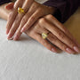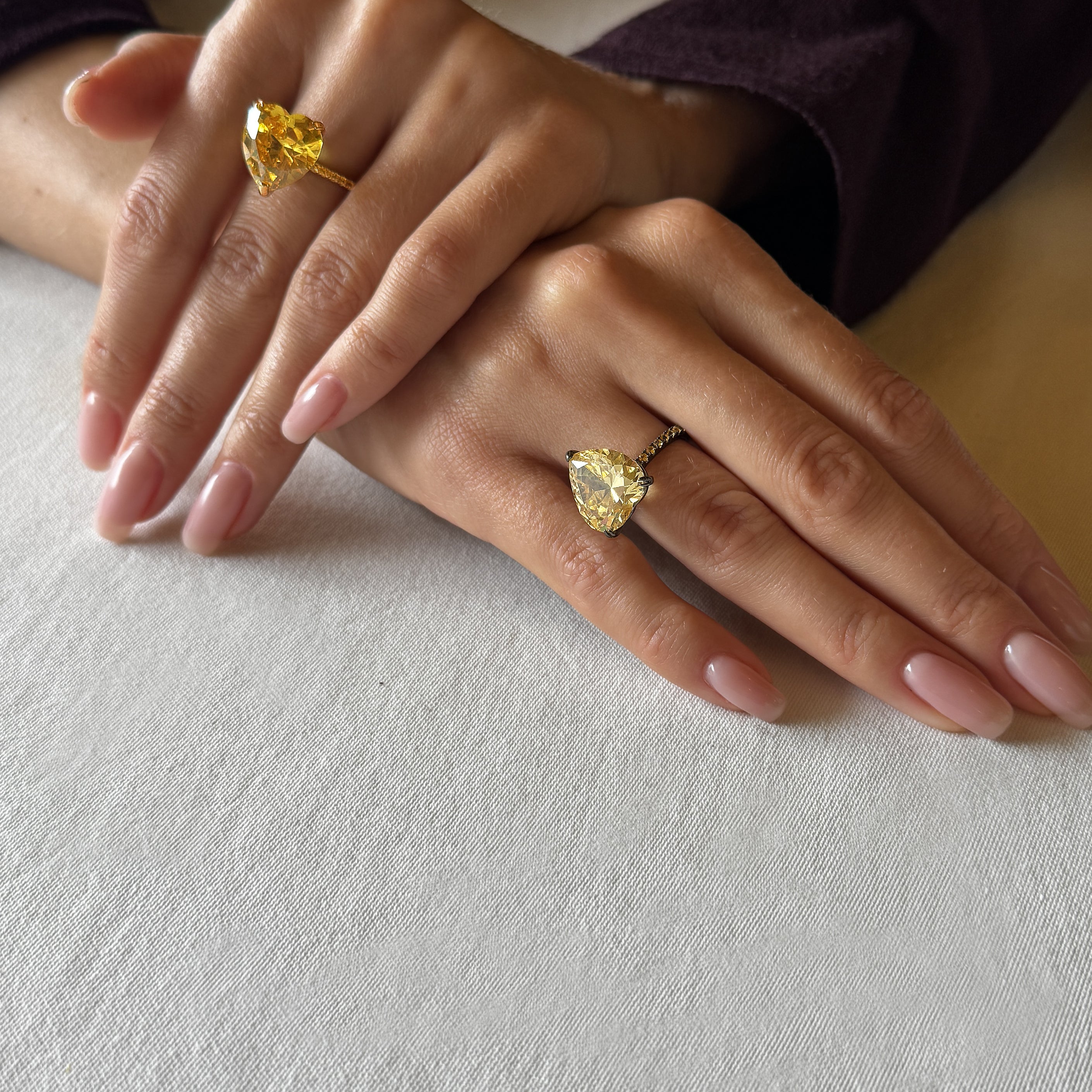 A radiant ring that captures the warmth of spring sunlight. Crafted from silver with delicate gold plating, it features a heart-cut Fancy Yellow Fabulite that glows with the energy of the sun’s first bright rays.