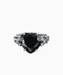 This elegant silver ring features a striking heart-cut black spinel at its center — a gemstone known for its deep, mysterious tone and bold character. Flanked by detailed fleur-de-lis motifs, the design blends gothic inspiration with vintage charm.