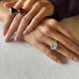 Small round cubic zirconia accents add a refined touch of sparkle, creating a beautiful contrast against the dark central stone.