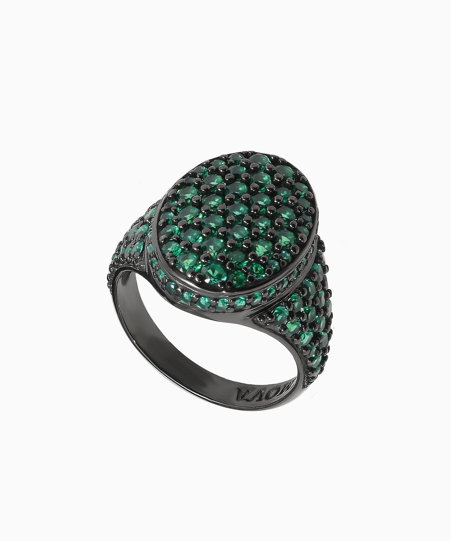 A signet ring is a distinctive, expressive piece that highlights the wearer’s individuality and refined taste. Black rhodium gives the ring a modern edge and striking depth, creating a beautiful contrast with the vivid green nano spinel — a stone that captivates with its fresh, vibrant color.